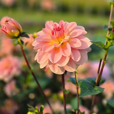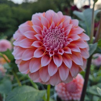 One of the most romantic and happy dahlias on my plot. Lovely pink with peachy undertones. Not a decorative. Not a waterlily.